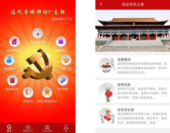 在本項目當中,移動e支部部分(fēn)主要用(yòng)來(lái)完成基層黨員(yuán)通(tōng)過手機對(duì)黨建政務工作指示進行實時(shí)跟蹤和(hé)随時(shí)随地的(de)進行黨建工作的(de)執行及記錄上傳的(de)操作。主要通(tōng)過對(duì)黨建工作的(de)工作動态跟蹤,政府通(tōng)知公告的(de)接收傳達,政府對(duì)黨員(yuán)教育資料的(de)随時(shí)查找查看及相關黨建工作的(de)落實、跟蹤、建立及上傳的(de)操作功能。